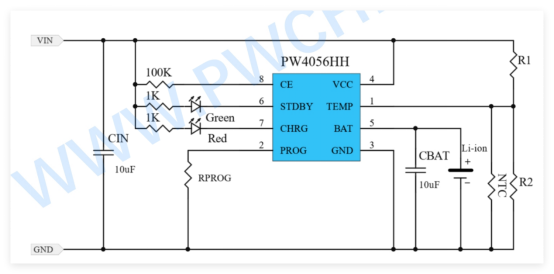 核心特性 :作为 PW4054H的升级版,采用SOT23-6封装。其主要区别在于提供了 双路充电状态指示输出 ( CHRG和STDBY),可更清晰地指示“充电中”、“充满/待机”或“故障”状态,用户体验更佳。