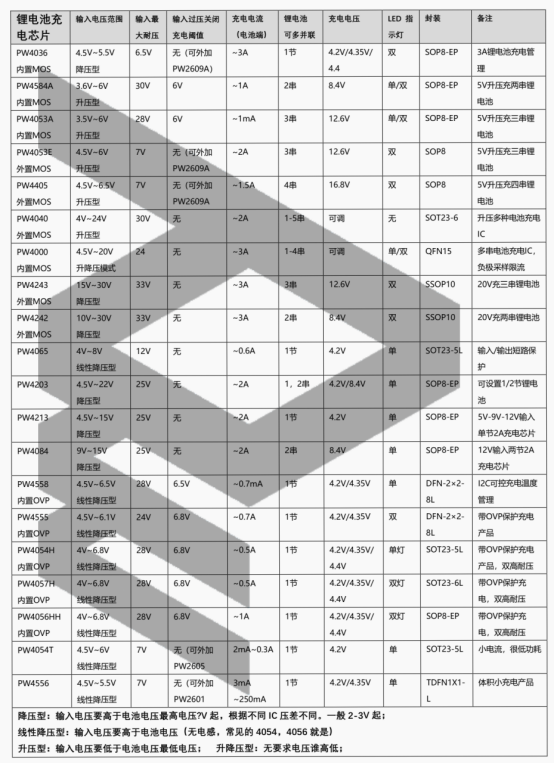 选择 3.7V锂电池充电芯片时,若追求极致成本和简单应用, PW4054H是最优解。若需明确的双状态指示,则选择 PW4057H 。当充电电流需求接近 1A且关注安全监控, PW4056HH是理想的线性方案。而对于追求充电速度、效率,并计划使用快充适配器的应用, PW4213开关降压方案是必然选择,其需搭配如 PW6606 等协议芯片以实现完整的快充功能。所有设计均应参考官方最新数据手册,并注意 PCB布局散热,以确保芯片稳定可靠工作。