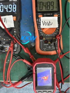 输入 4.98V,输出4.89V负载2A,温度33.6度,正常。