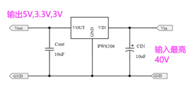 LDO的选择如,采用 PW6566,如果是输出 5V,3.3V,3V,输入电压高的,可以用 PW6206。