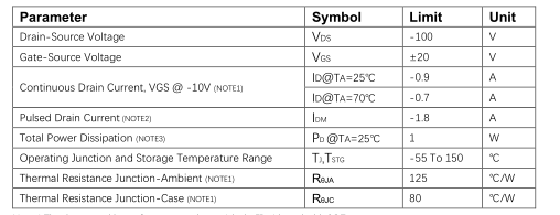VDS = -100V, ID = -0.9A