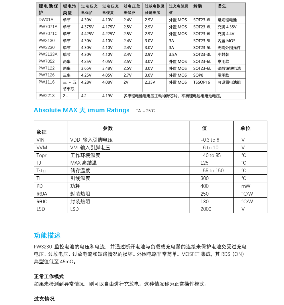平芯微PW3230中文规格书