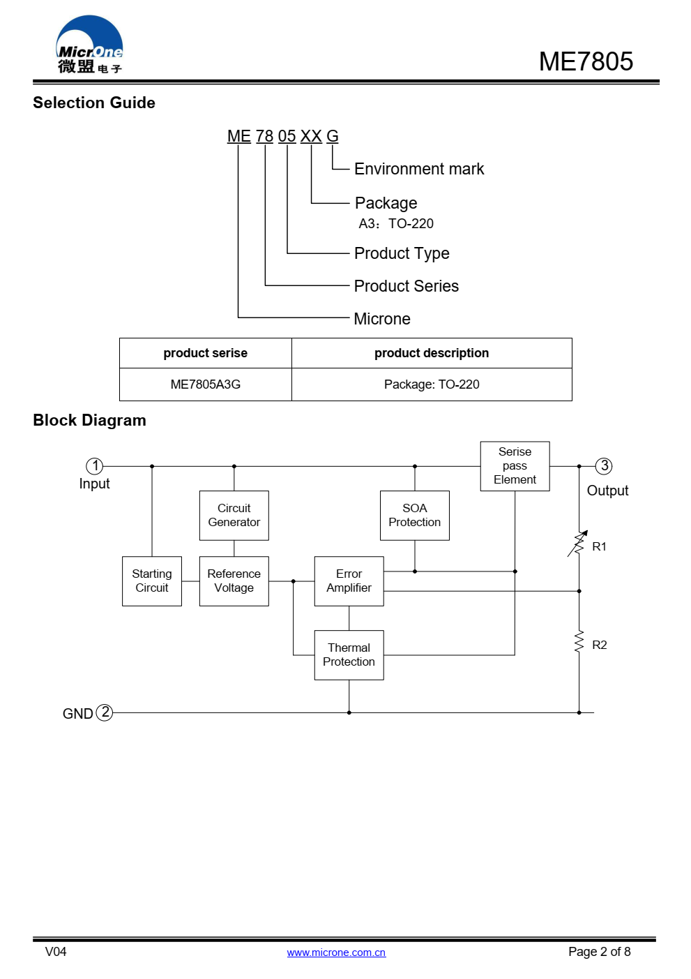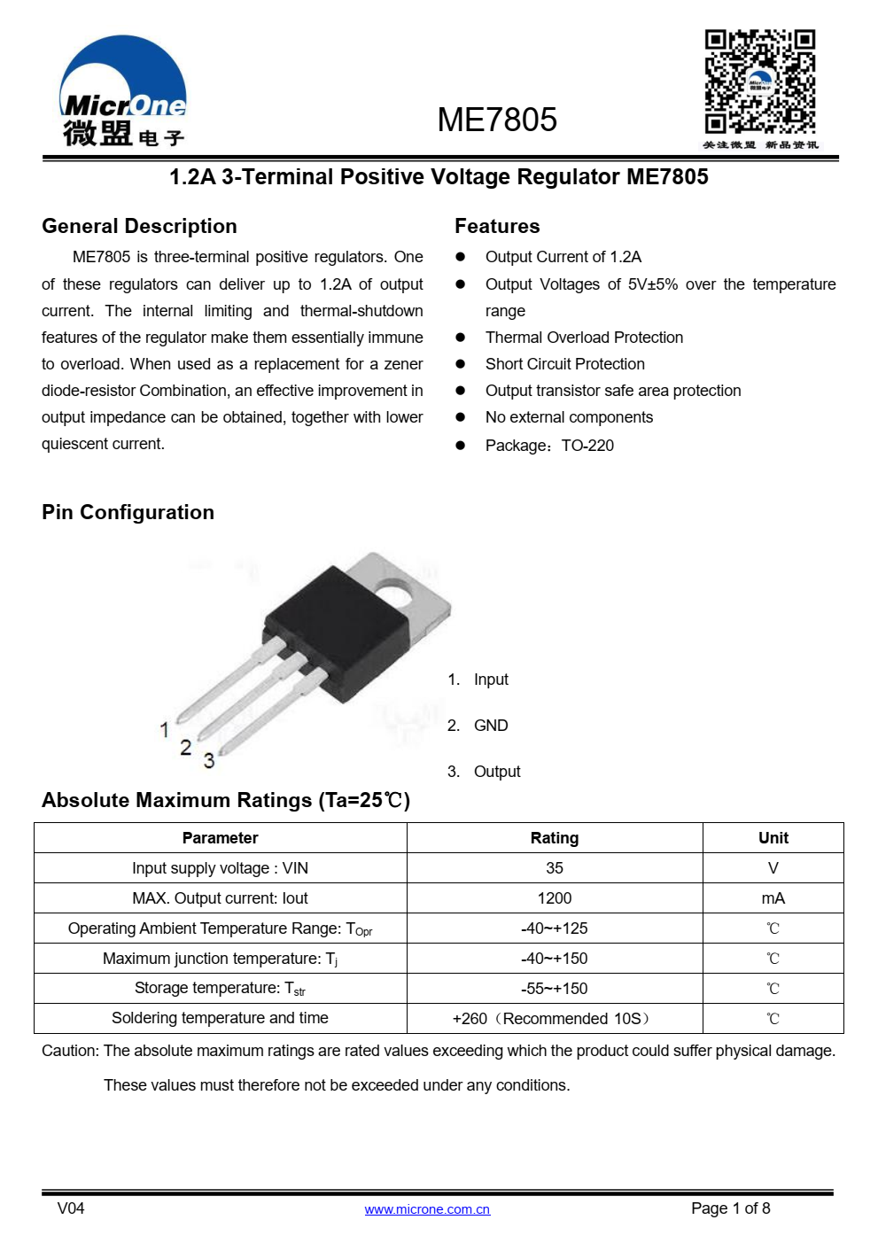 ME7805是三端正调压器。一  其中一个调节器可提供高达1.2A的输出  现在的内部限制和热关机