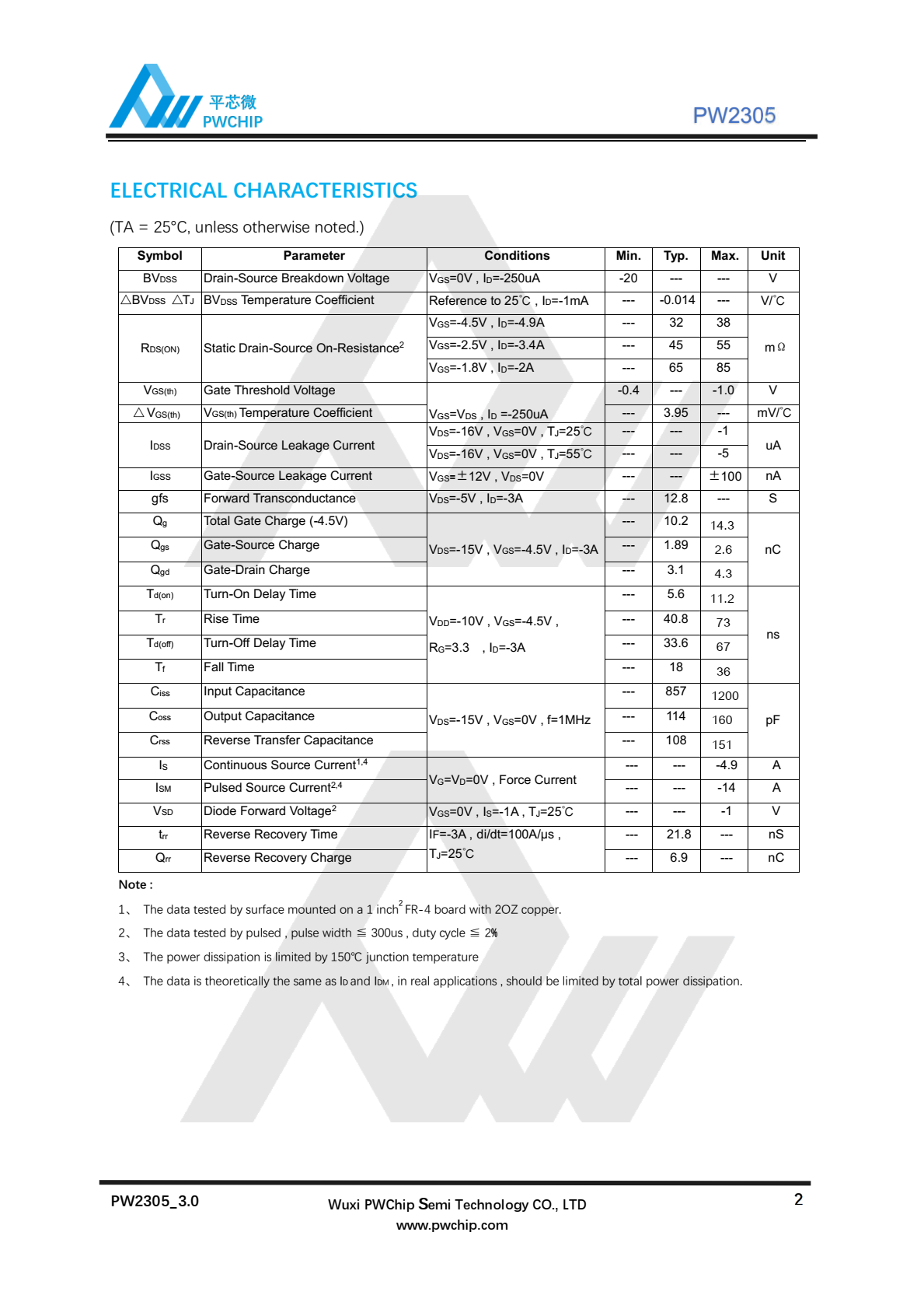 代理PW2305,采用先进的沟槽技术,提供出色的RDS(ON)