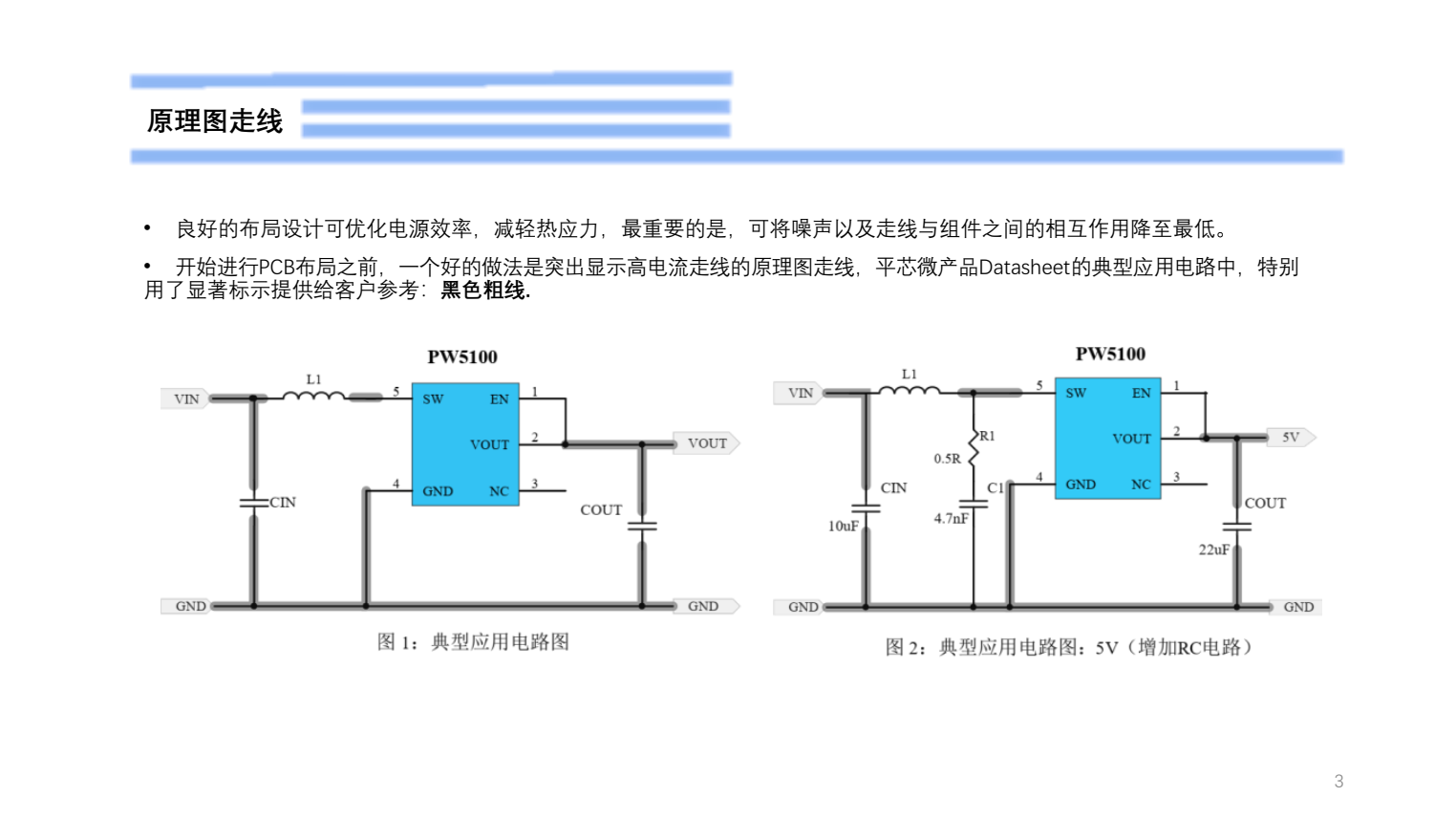 • Cout需要靠近 PW5100的 VIN引脚 PIN2。