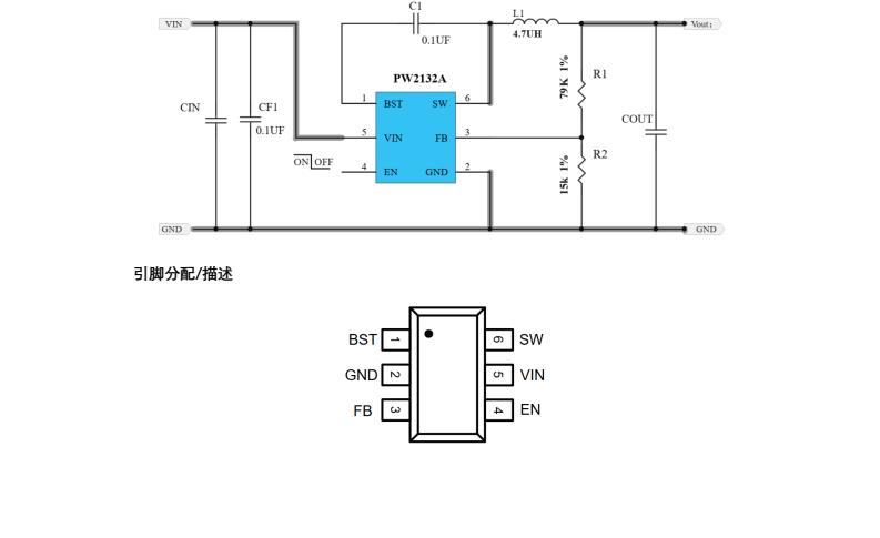 PW2312A 需要最少数量的现成的外部组件,并且采用节省空间的 SOT23-6 封装。