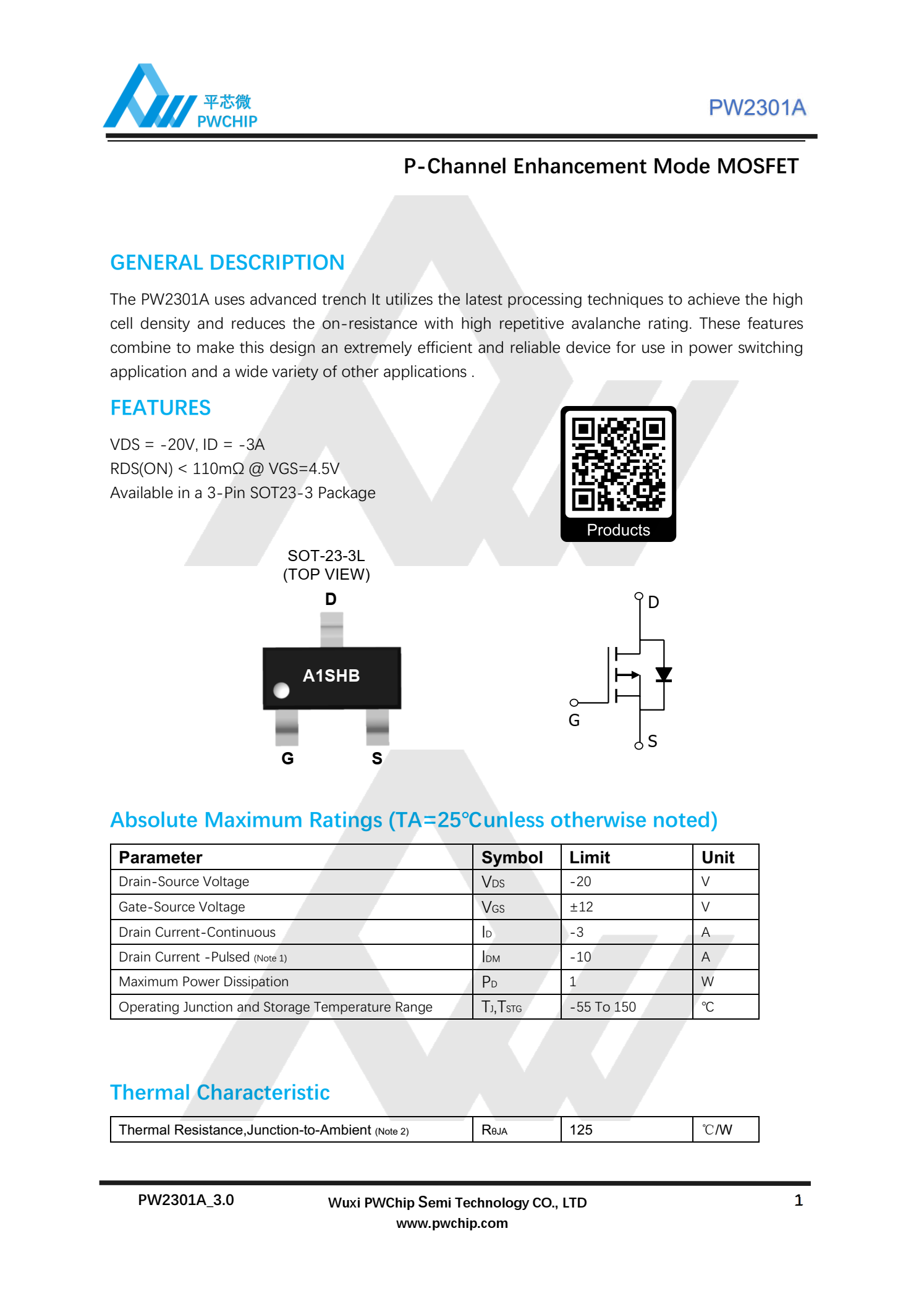 PW2301A采用先进的沟槽,利用最新的加工技术