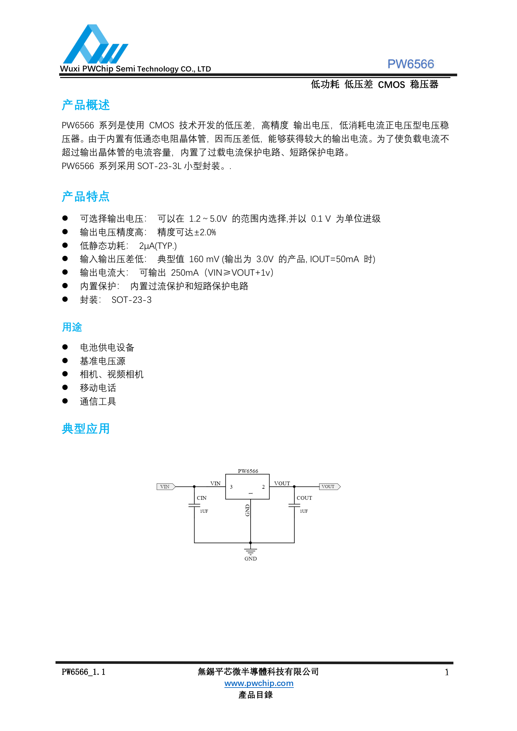 PW6566输入锂电池,5V的低功耗LDO稳压IC