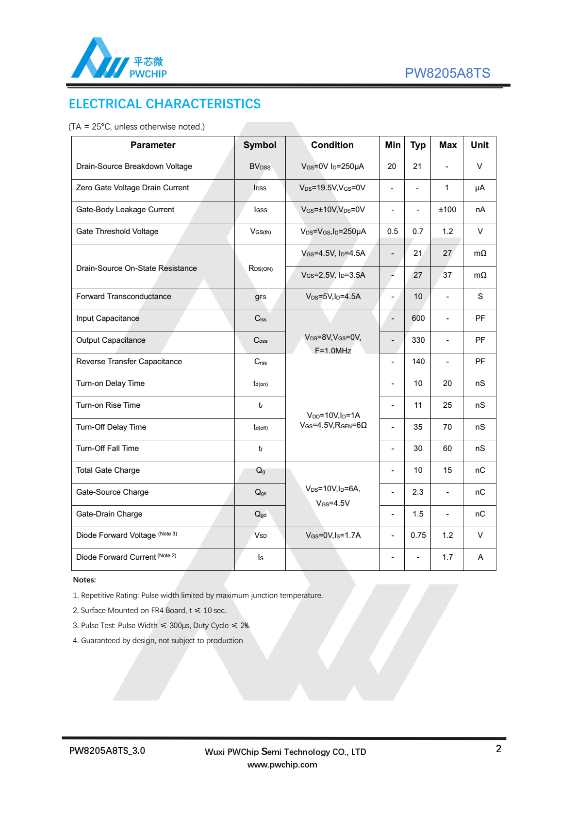 PW8205A8TS是具有极高单元密度的最高性能沟槽N沟道MOSFET,